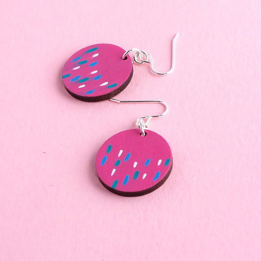 Dash Pattern Disc Dangly Earrings