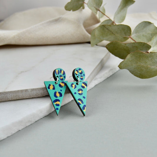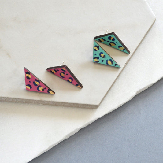 Large Leopard Triangle Stud Earrings
