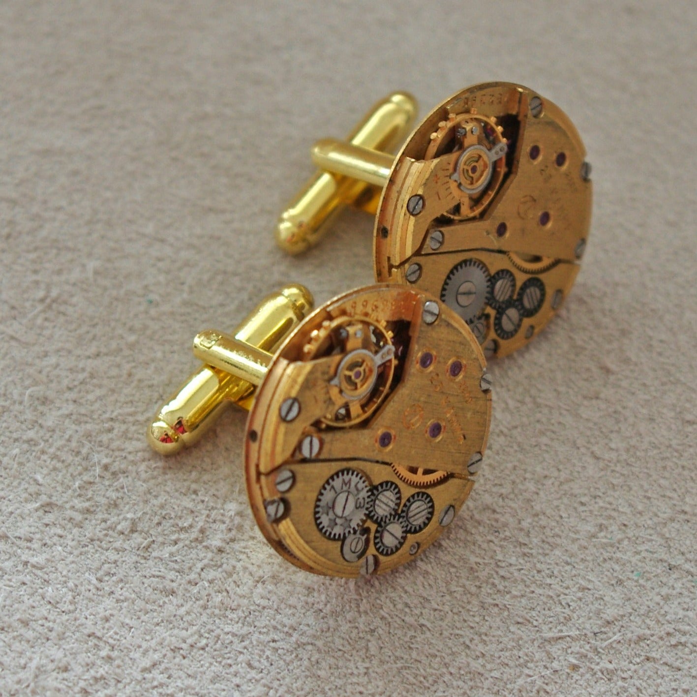 These gold coloured cufflinks are handmade from the highest quality vintage watch mechanisms.