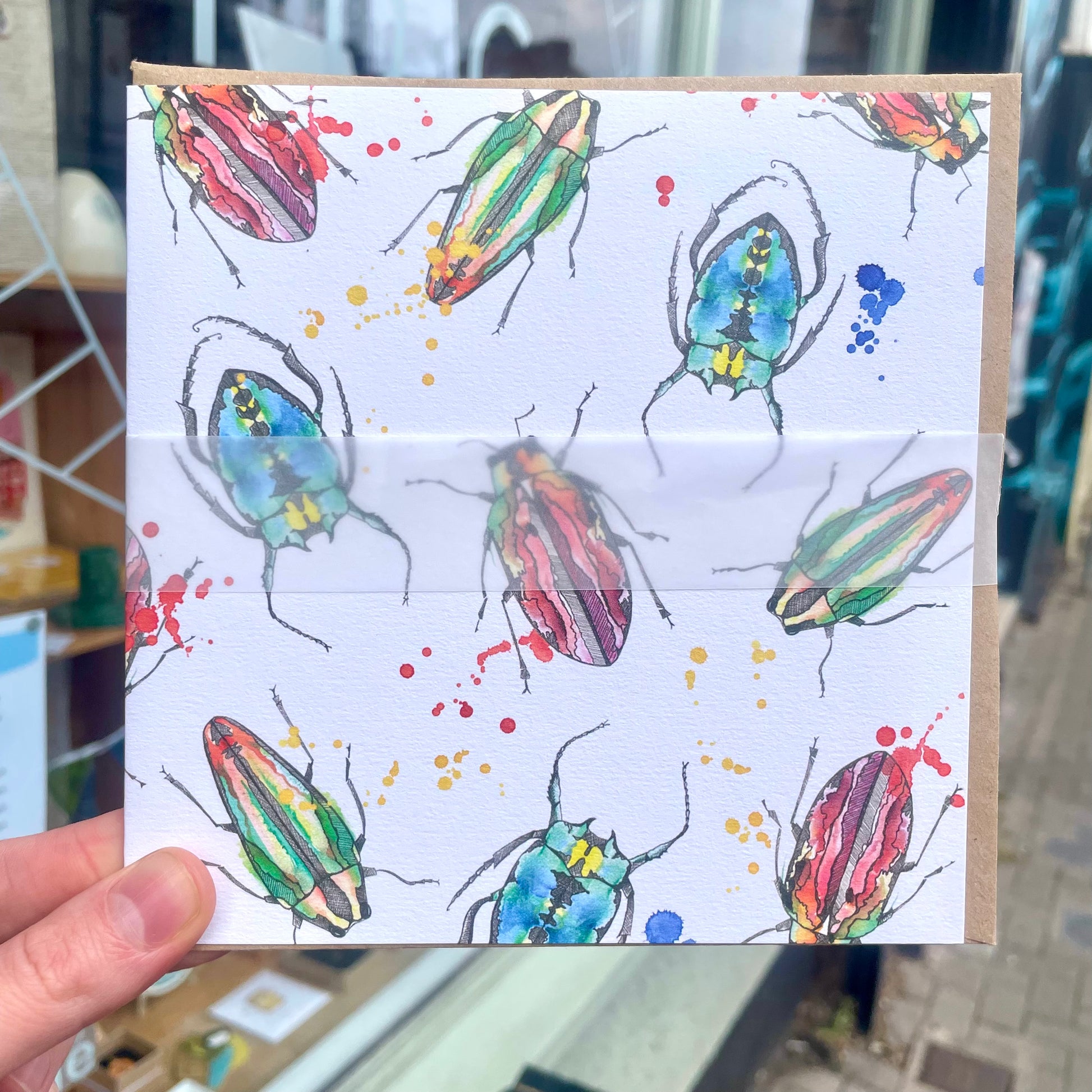 From my popular Beetles prints my bugs have made it onto these colourful cards!