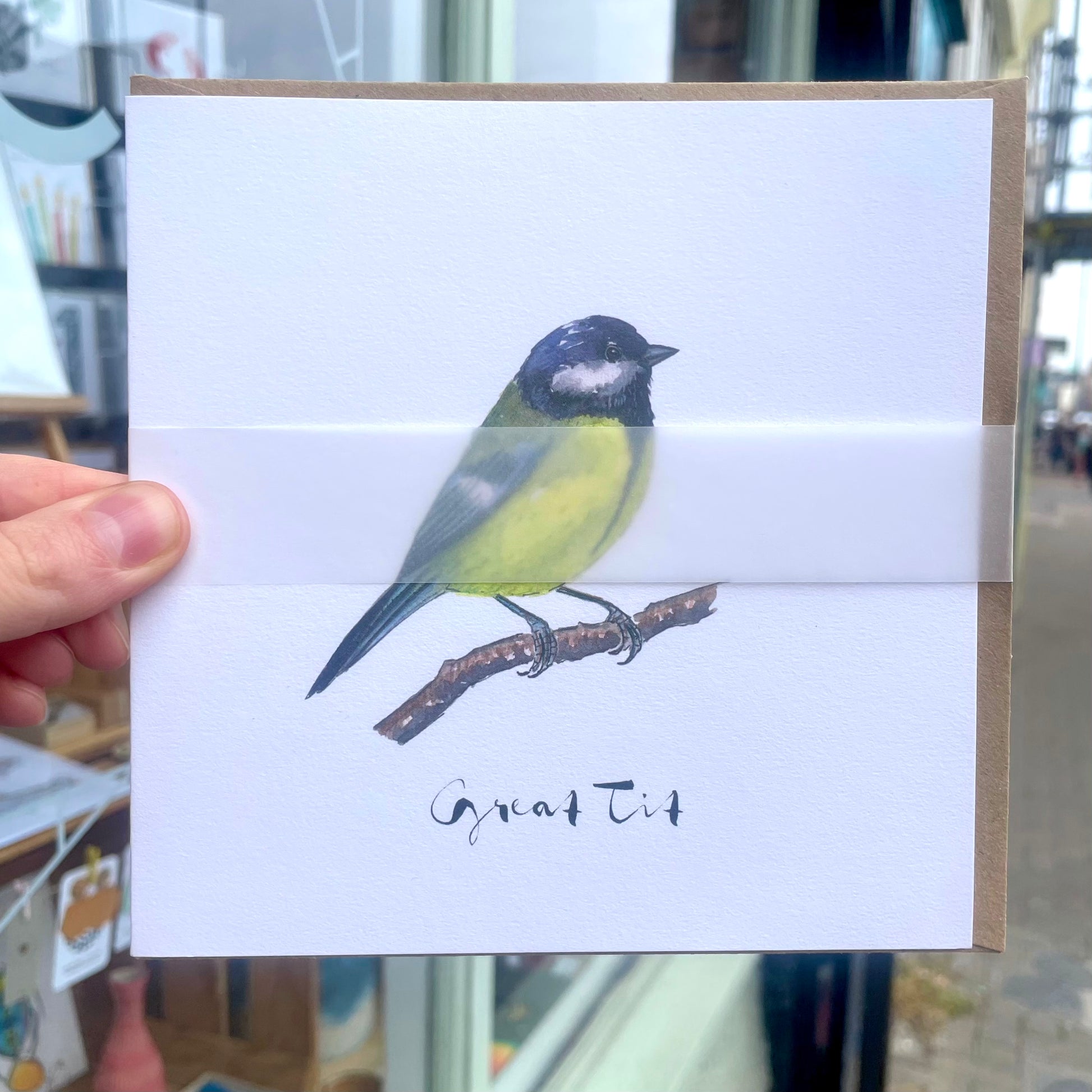 The Great Tit card is part of my popular British songbird collection, perfect for nature lovers and bird watchers alike, this card is left blank so ideal for any occasion.