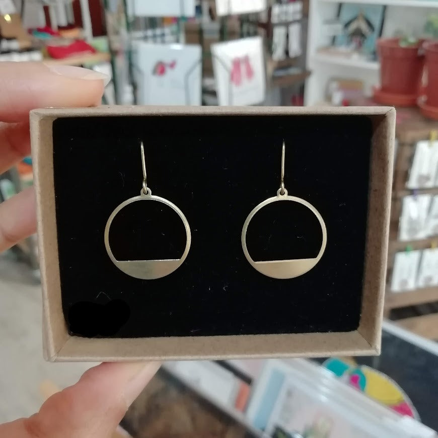 Beautifully simple and elegant geometric style brass dangly earrings. Matching necklace available.