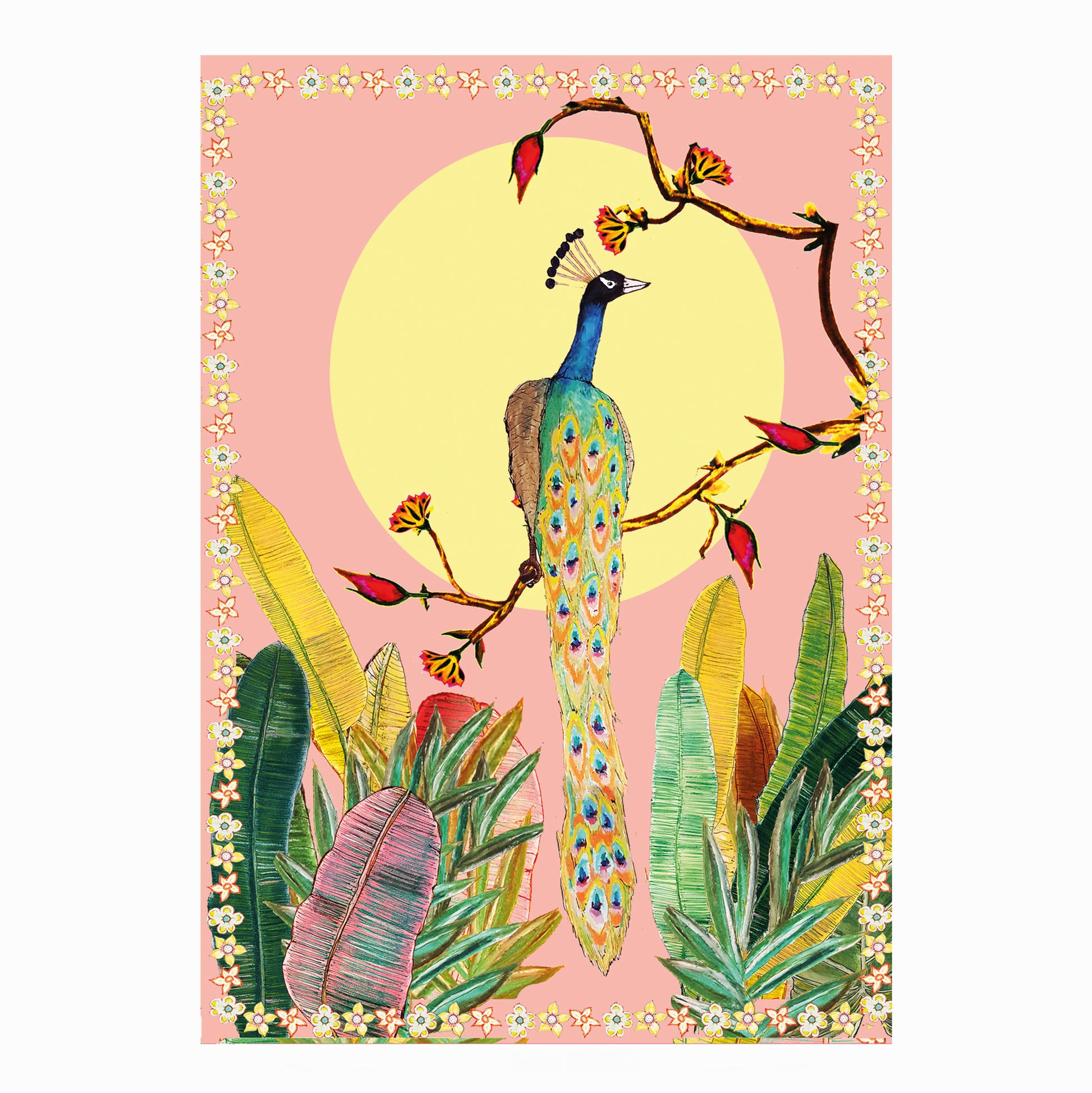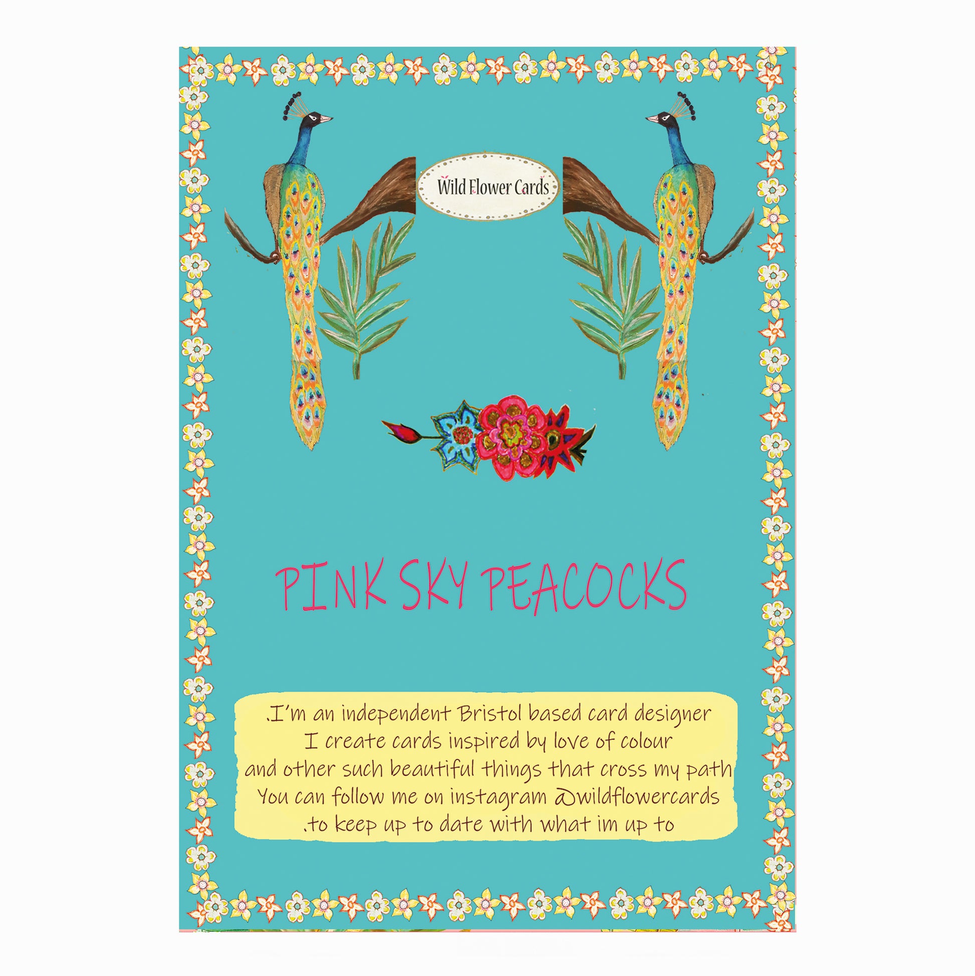Pink sky peacock card.