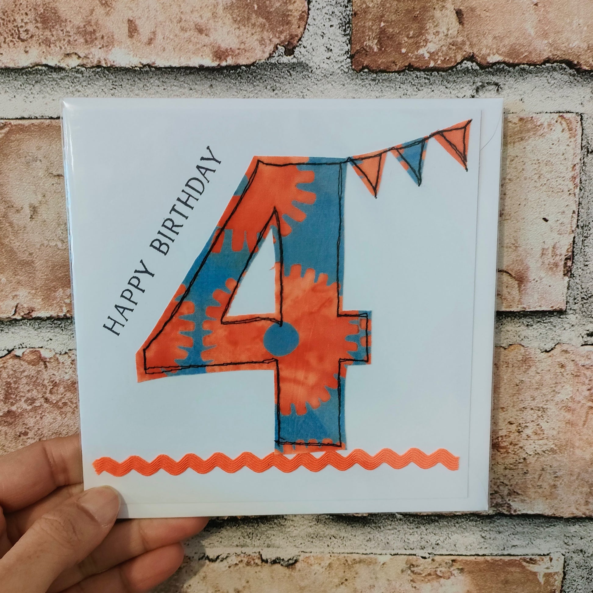 Celebrate your little one's 4th milestone with this charming Birthday Card, crafted using freestyle machine embroidery and appliqué techniques.