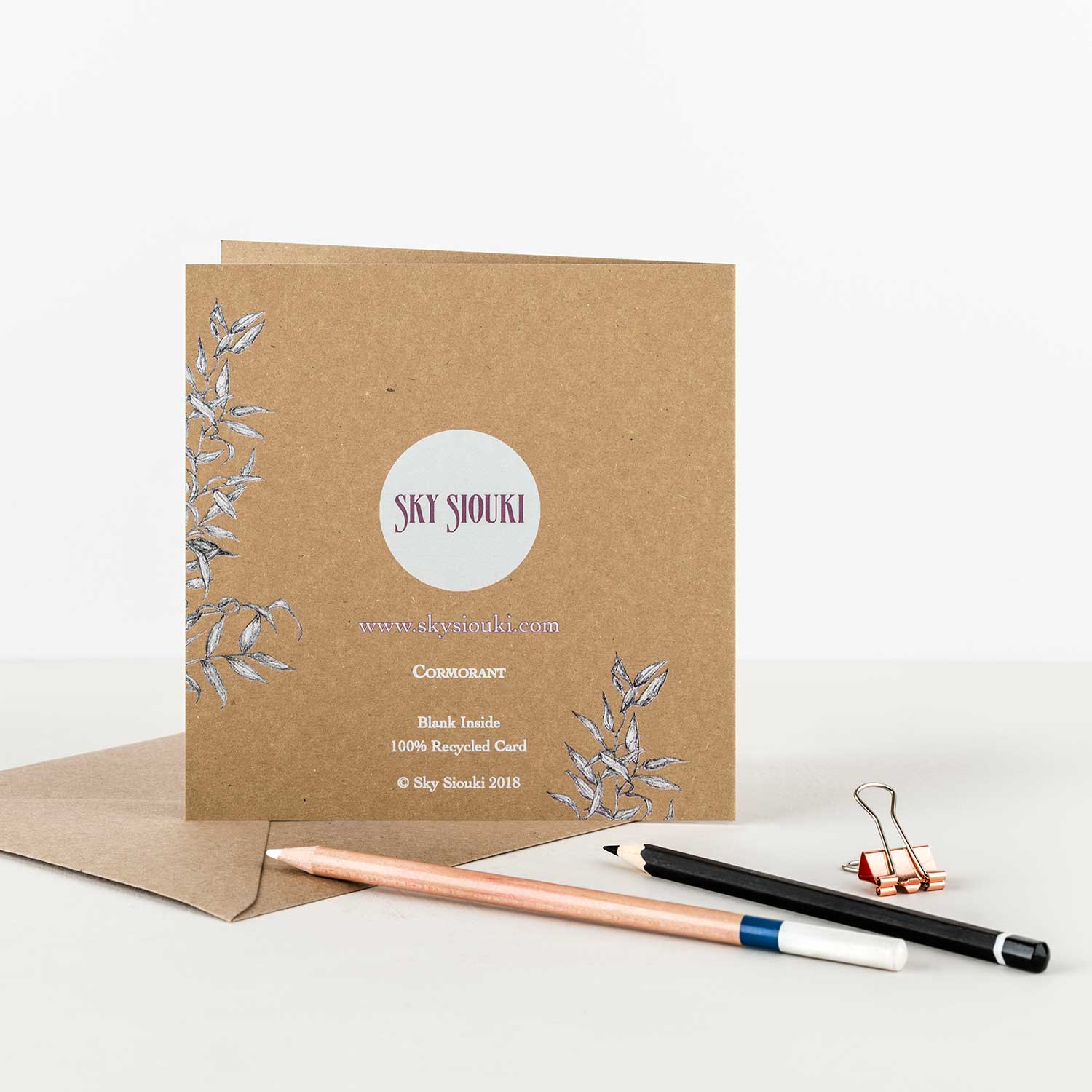 As a professional artist with domain expertise in pencil illustrations, Sky Siouki presents a captivating cormorant greeting card.