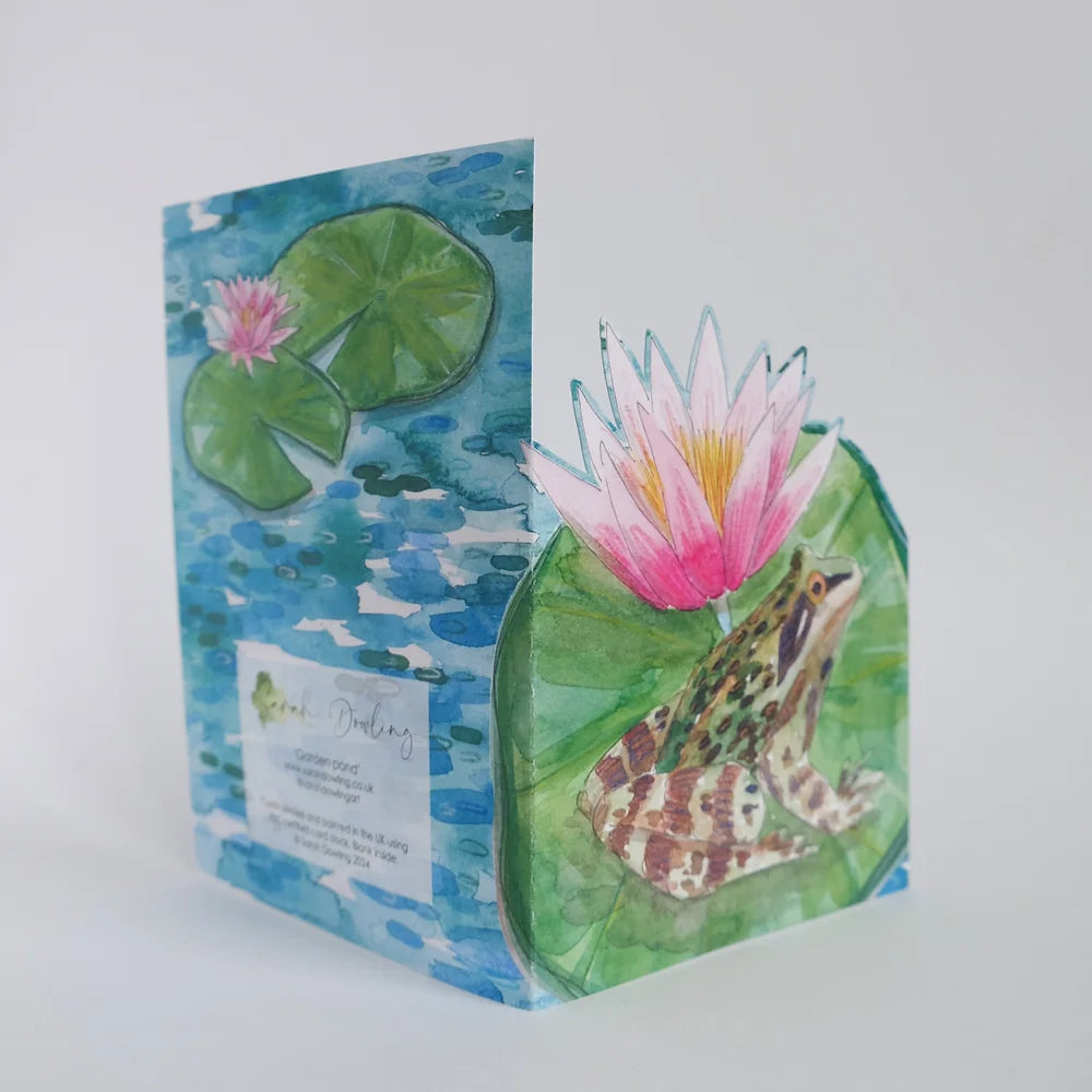 The 'Garden Pond' card is part of Sarah's brand new die-cut card collection, featuring a watercolour illustration inspired by British wildlife. She has designed these cards to be beautiful, special, stand out pieces to send in the post to your loved ones -something they'll want to keep on their sideboard for a bit longer than most...