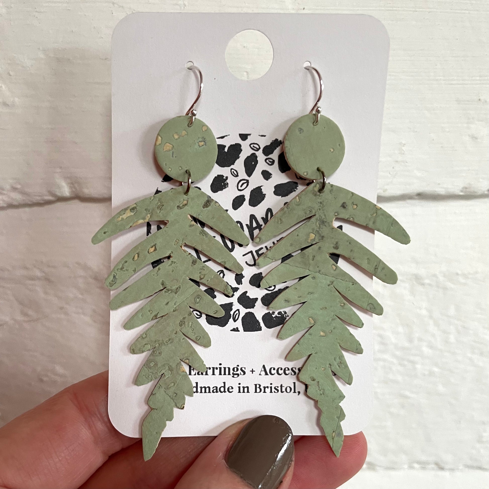 Add a touch of nature to your outfit with our green fern earrings made from real cork. The recognisable leaf design creates a beautiful and eco-friendly accessory for any occasion. Treat yourself or your loved ones to these lightweight and stylish earrings!