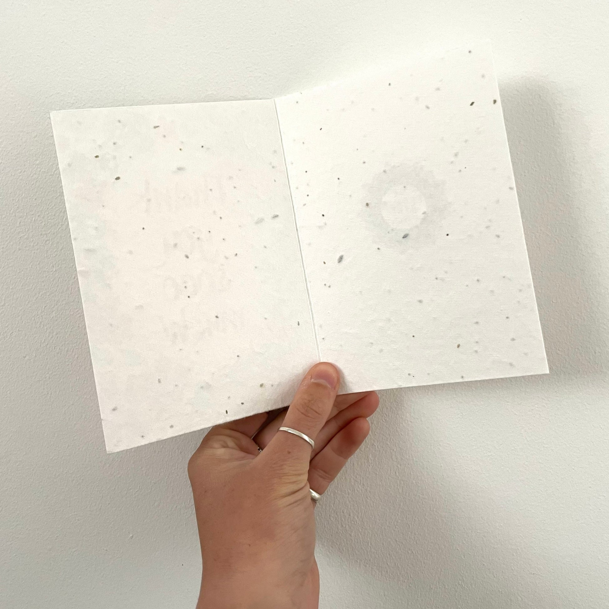 Instead of recycling this card in the usual way, you can instead plant it under an inch of soil and watch it grow and bloom into beautiful wildflowers.