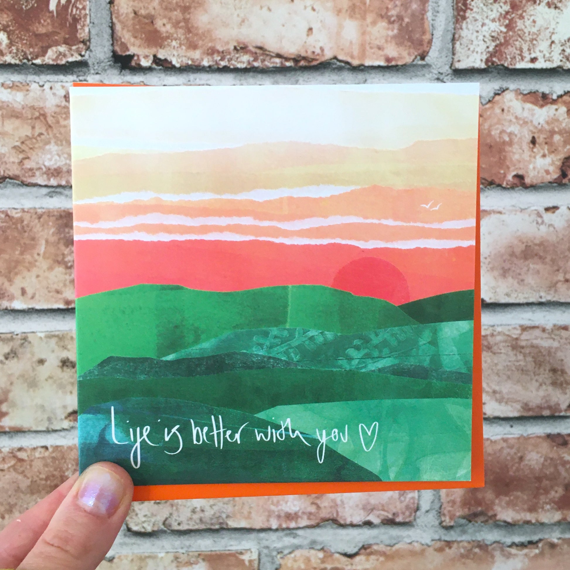 Created using printmaking inks, careful mixing and clean collage - Fiona's cards are perfect to send to someone you love.