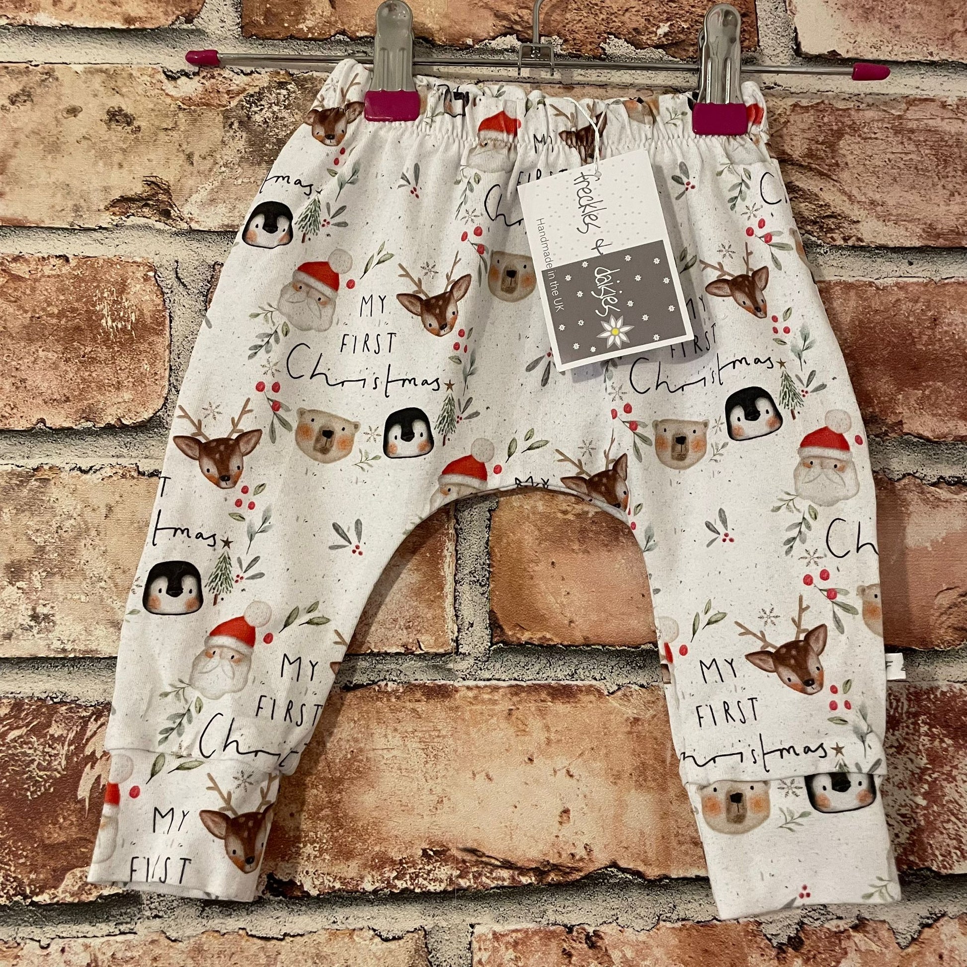 These versatile unisex harem leggings are fashionable yet practical, are cut for nappies and all seams are serged/overlocked for durability when your little one is on the move.
