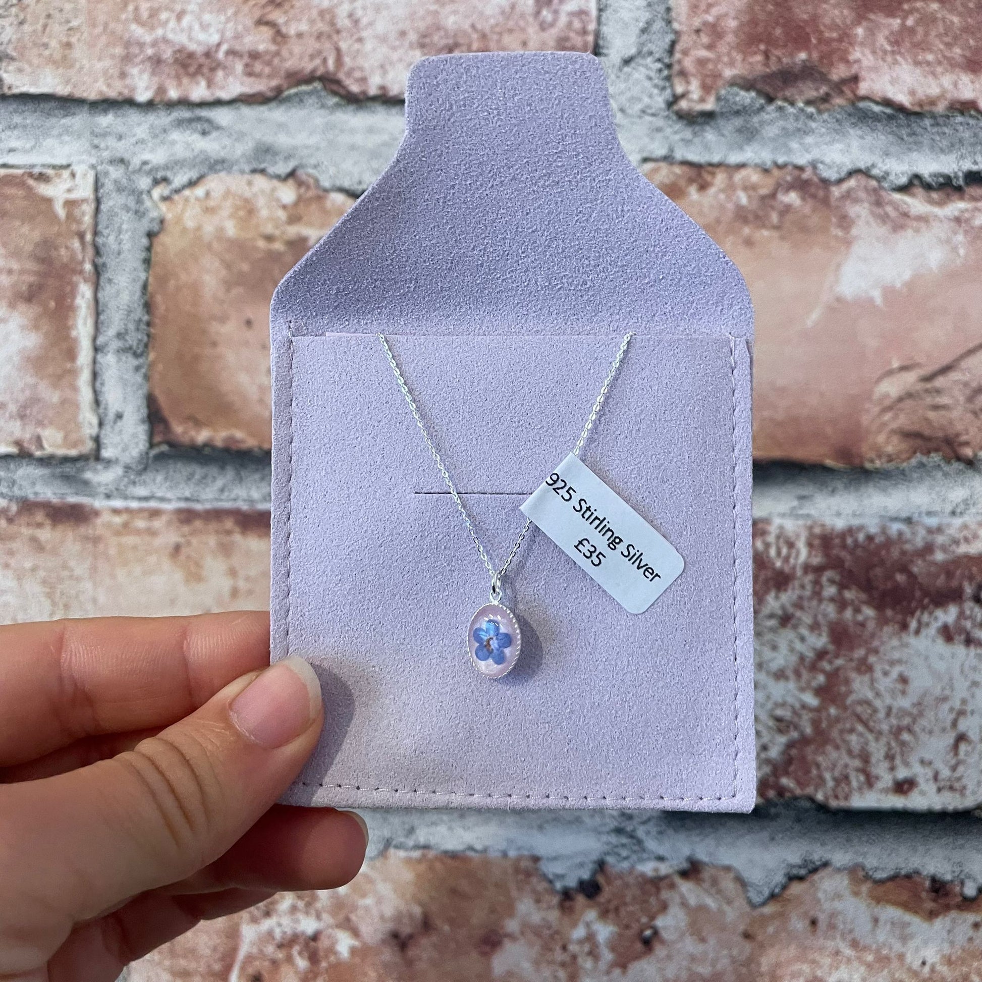 Pressed Forget-Me-Nots Necklace with 100% 925 Silver