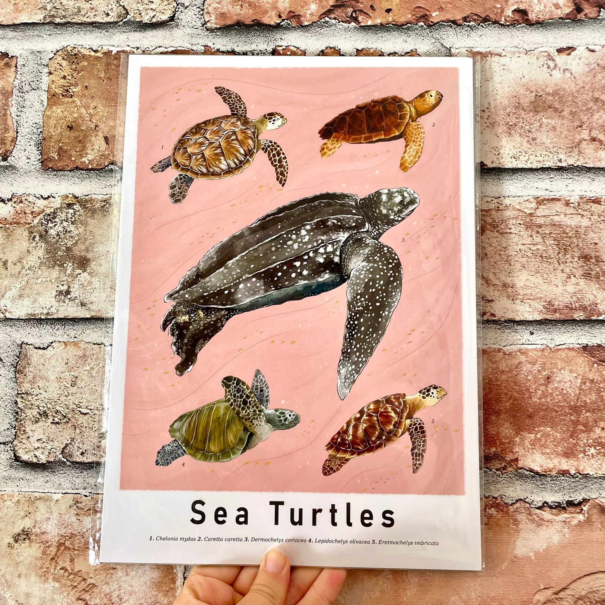 Sea Turtle Art Print – Scientific Illustration of Marine Turtles Hand-Drawn.