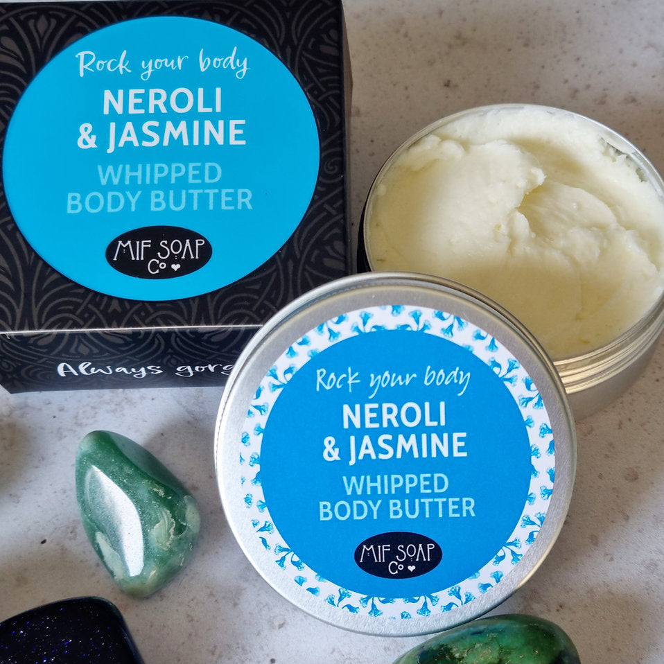 This triple whipped Body Butter is delicately scented with Jasmine and Neroli essential oils, to give you the exotic and floral middle notes of Jasmine, combined with uplifting top notes of refreshing citrus. Hydrating and balancing, this body butter works hard to leave your skin pampered.